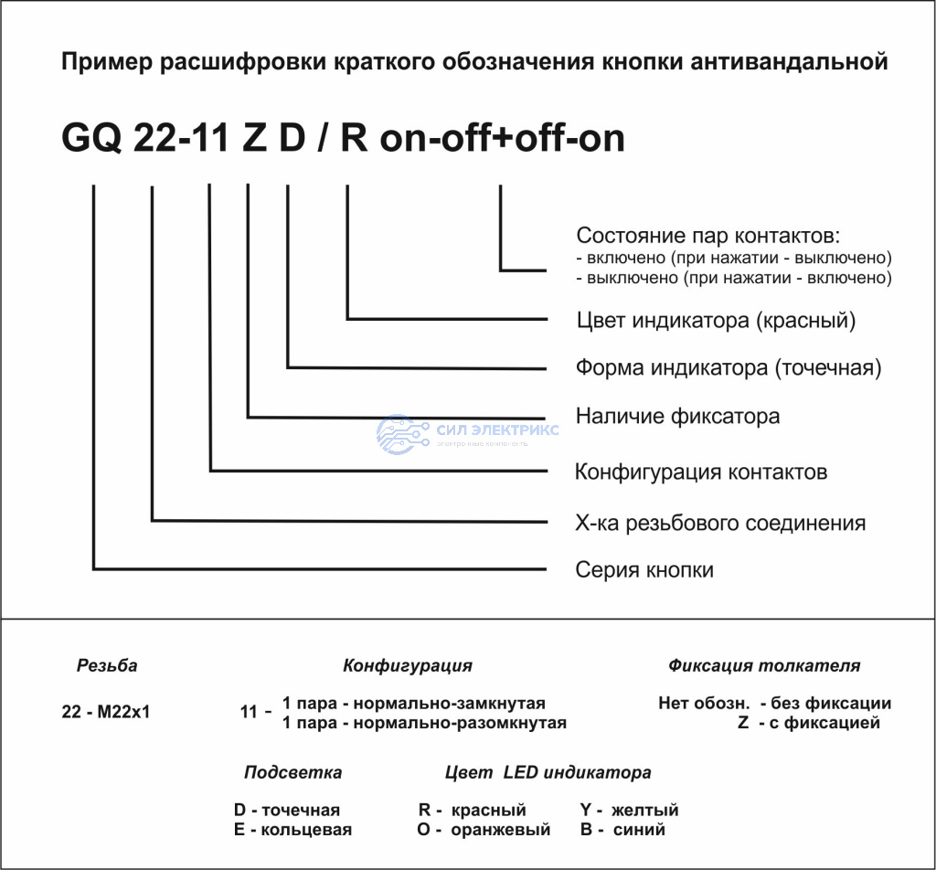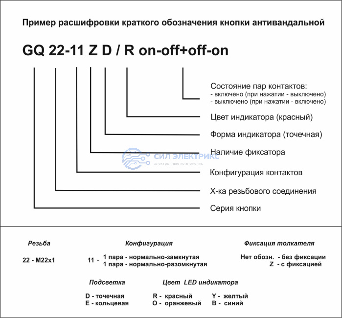 Кнопка антивандальная GQ22-11 on-(off)+off-(on)