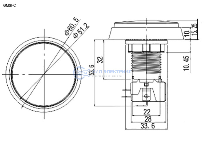 Кнопка GMSI GMSI-1B-C no(nc)+nc(no) green, зеленый, нормально открытый (no) и нормально закрытый (nc) контакты