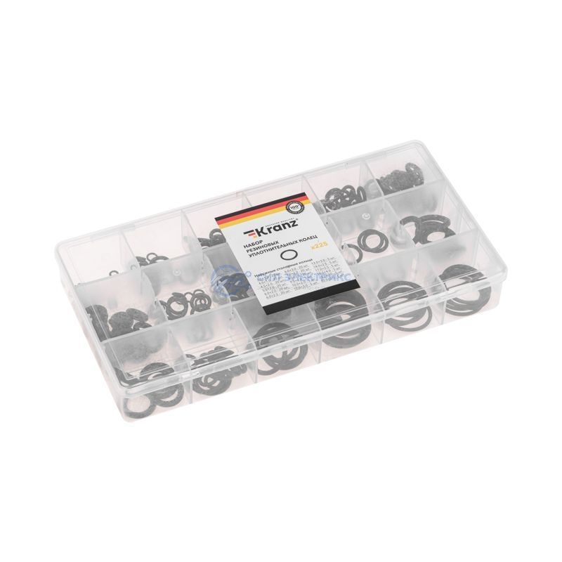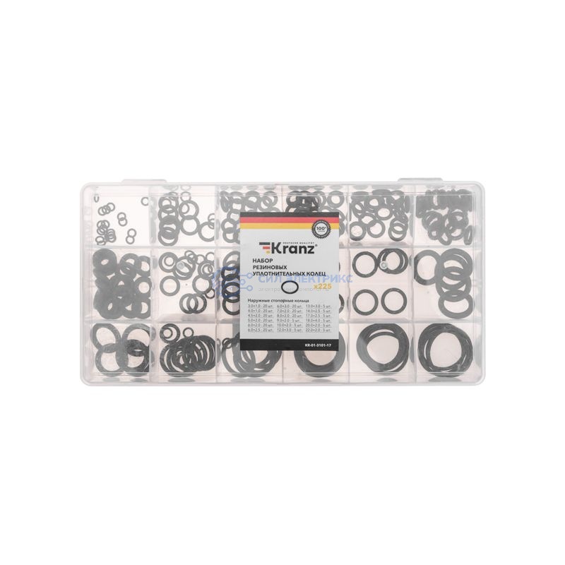 Набор резиновых уплотнительных колец 3-22мм (225 шт/уп) KRANZ