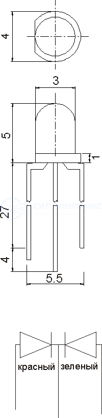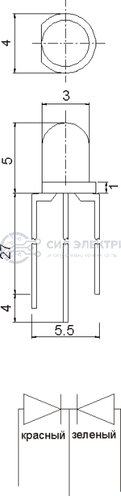 Светодиод 3 RG 300-500mcd 2-3,4v