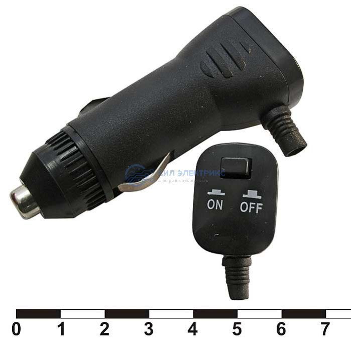 Вилка (штекер) автомобильная для прикуривателя с выключателем с боковым выводом
