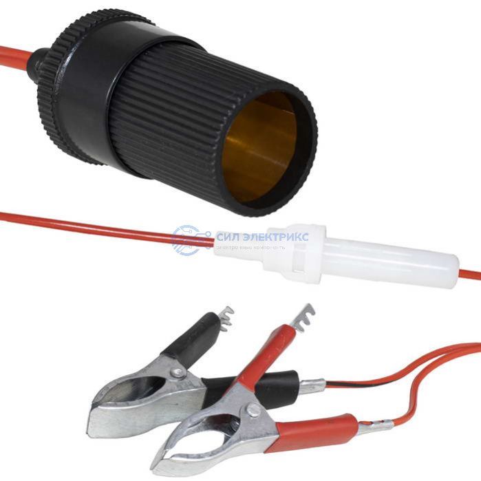Переходник розетка (гнездо) прикуривателя выносная с передохранитем и клеммами типа "крокодил"