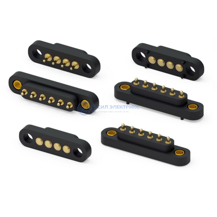 Разъём питания магнитный подпружиненный Pogo 4pin 03 MF, 4 контакта, комплект male-female, шаг 2.5 мм, 2 А, 12 В
