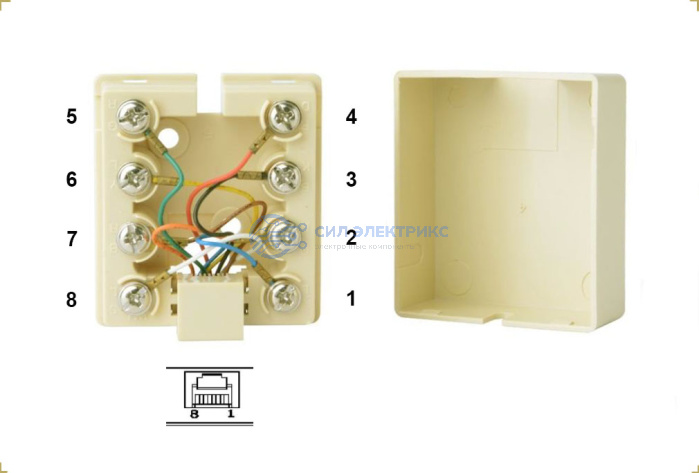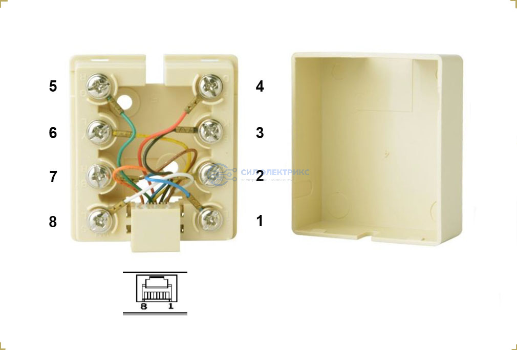 - Подключение устройств с 8 контактами в Ethernet-сетях для передачи данных и сигналов.