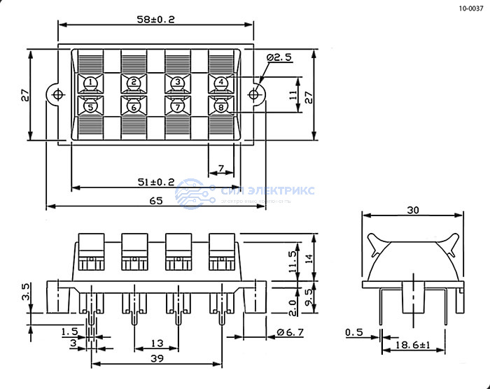 Штекер (гнездо, клемма) 10-0037 / 30*58 mm