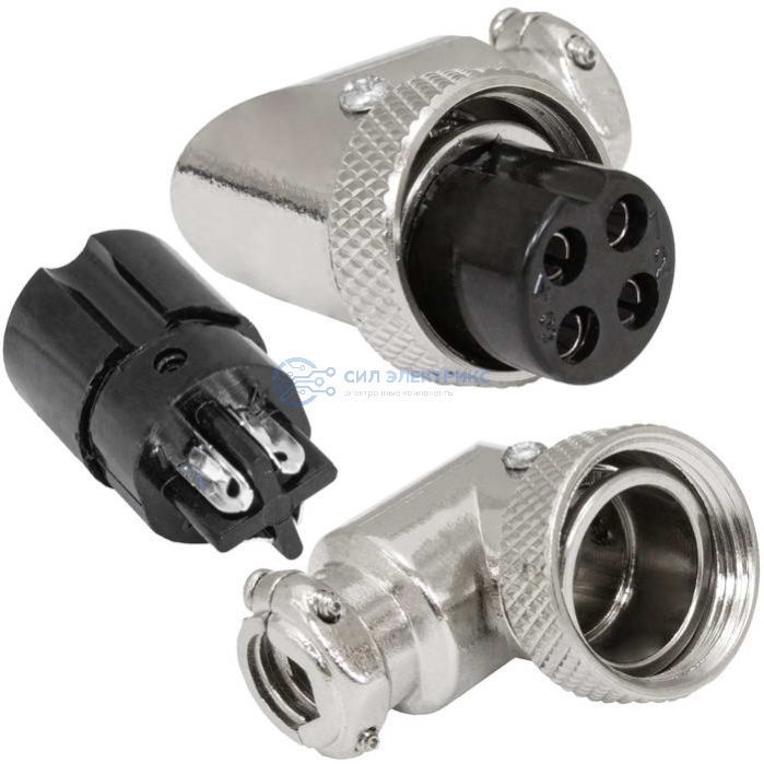 Разъём цилиндрический малогабаритный GX16M-4AA (вилка на кабель, ключ AA), резьба M16 × 1 мм, 4 контакта