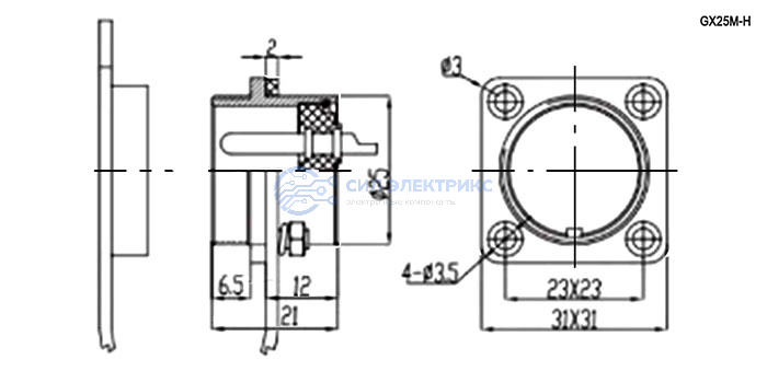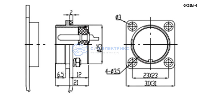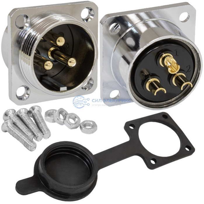 Разъем малогабаритный цилиндрический блочный (вилка) фланцевый (квадрат) с крышкой серии GX25M