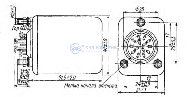 Реле РМУГ 401.01, 24VDC, 10A, тип контактов: переключающий (SPDT), сила удержания: 90 г, рабочая температура: -40°C до +85°C