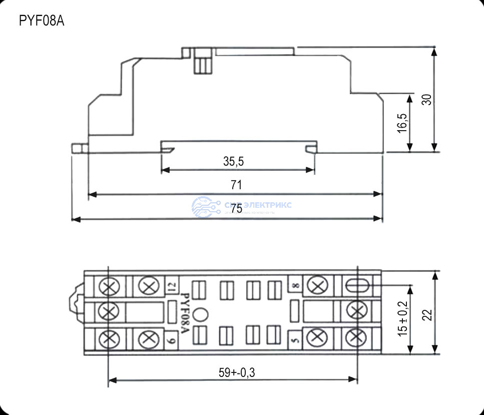 PYF08A колодка для 4453(18F)-2, 8 контактов, 250 В, 10 А, температура работы -40°C до +85°C
