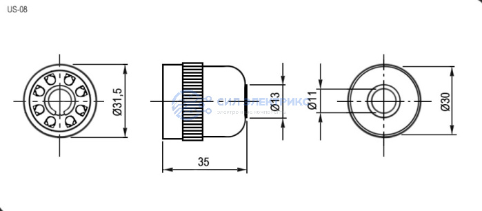 US-08 колодка для MK2P, 8 контактов, 250 В, 10 А, температура работы -40°C до +85°C