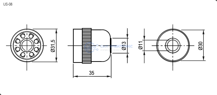 US-08 колодка для MK2P, 8 контактов, 250 В, 10 А, температура работы -40°C до +85°C