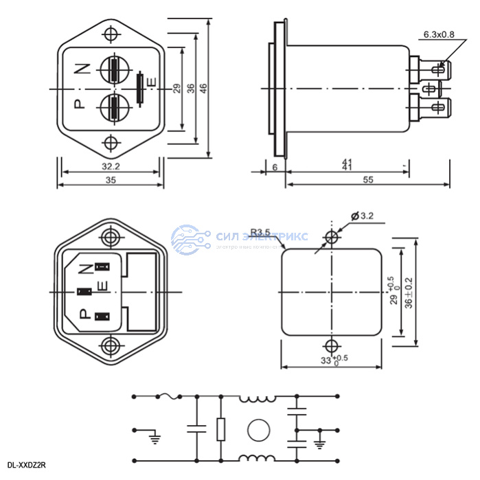 Фильтр сетевой DL-10DZ2R 10A. 250V