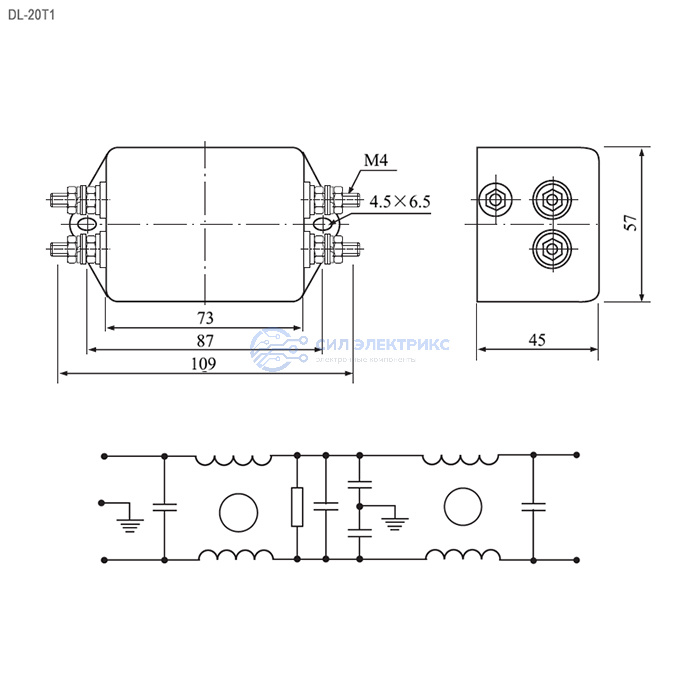 Трехфазный сетевой фильтр DL-10EA, 10А, 250В