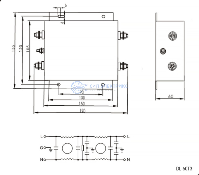 Трехфазный сетевой фильтр DL-10EA, 10А, 250В