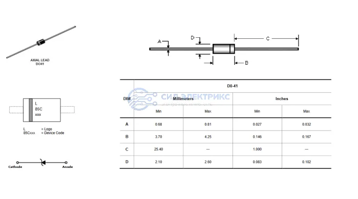 Стабилитрон BZX85C15 — полупроводниковый диод с номинальным напряжением стабилизации около 15 В, предназначенный для стабилизации напряжения в различных электронных устройствах. Этот стабилитрон используется в источниках питания, защитных цепях и других схемах, где необходима точная стабилизация и защита от перенапряжений. BZX85C15 отличается высокой надежностью и долговечностью, что делает его идеальным выбором для применения в промышленной и бытовой электронике.