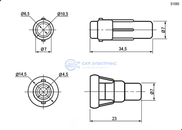 Держатель предохранителей S1060 предназначен для установки плавких вставок формата 5×20 мм с номинальным током до 6 А и напряжением до 250 В. Выполнен в закрытом корпусе из термостойкого пластика с резьбовой крышкой, защищающей от внешних воздействий и обеспечивающей удобный доступ к предохранителю. Панельный способ крепления позволяет легко интегрировать держатель в корпус прибора, обеспечивая надёжную установку. Контактная группа обеспечивает стабильную проводимость и предотвращает перегрев. Модель предназначена для применения в оборудовании с умеренной нагрузкой, где важна простота замены защитного элемента без демонтажа устройства.