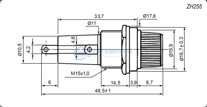Держатель предохранителя ZH255, 6.3х30 мм