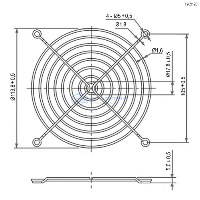 Решетка для осевого вентилятора металлическая RUICHI, 120x120 мм